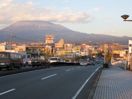 | 市街地からでも思わず見上げてしまう富士山。この付近の道路はかなり広い。 | ロゼシアター(富士市民文化会館)。吉原本町と富士本町の2大商店街の中間に位置する新たに開発されたこの周辺が現在の富士市中心部となっている。 |